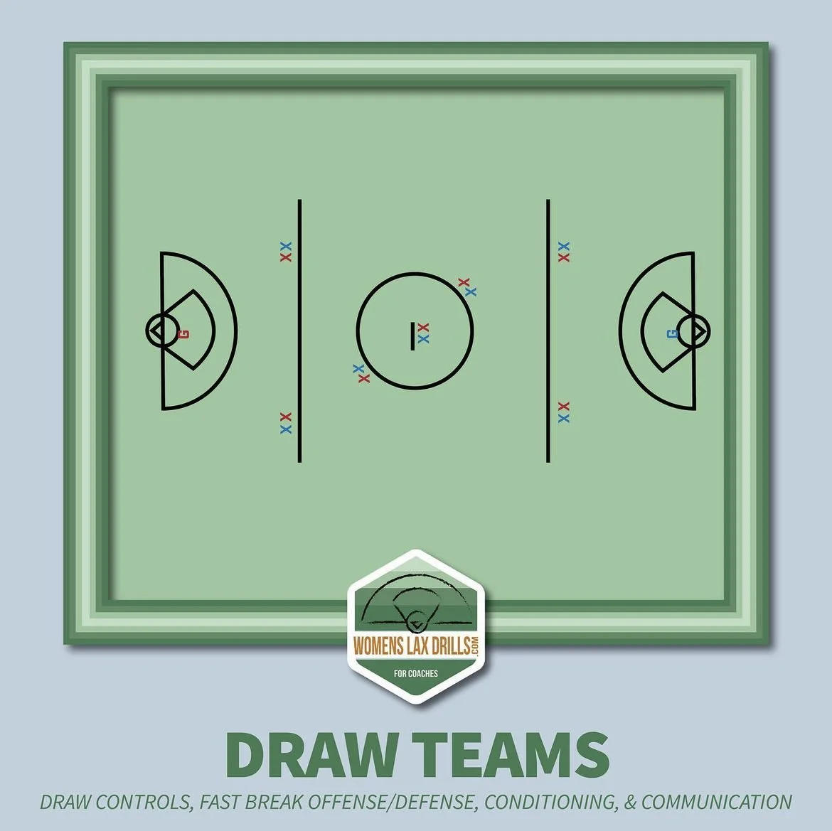 A competitive lacrosse drill for practicing full-field team draw strategy.